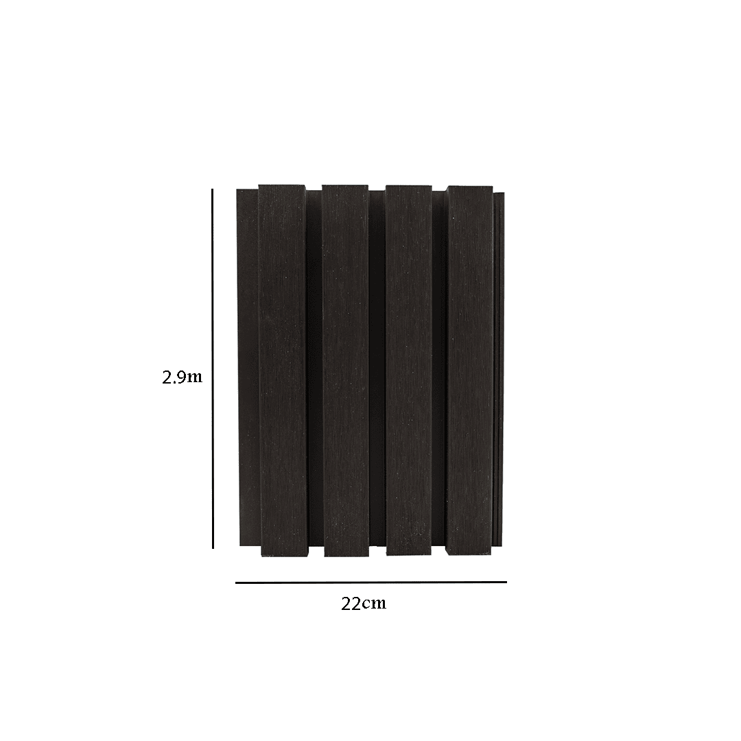 لوح بديل الخشب الخارجي مصمم لتحمل جميع الظروف الجوية، بعرض 22 سم وطول 2.90 متر، مصنوع من خامات مقاومة للرطوبة والحشرات والشمس المباشرة.