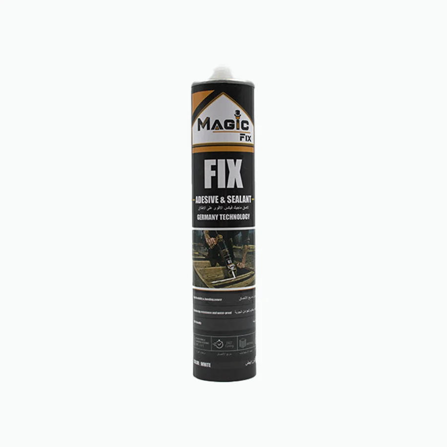 سيليكون لاصق وعازل Magic Fix باللون الأبيض، يتميز بتركيبة احترافية عالية الجودة تعتمد على تقنيه تمنح قوة التصاق فائقة ومتانة عالية تدوم لفترات طويلة. يُستخدم في أعمال التركيب والتشطيب الداخلي مثل تثبيت بدائل الخشب، ألواح PVC، باركيه SPC، البانوهات الجدارية، والمطابخ. يوفر عزلًا ممتازًا ضد الرطوبة والماء، ويتميز بسرعة الجفاف وسهولة الاستخدام على مختلف الأسطح مثل الخشب، الجدران، السيراميك، والزجاج.