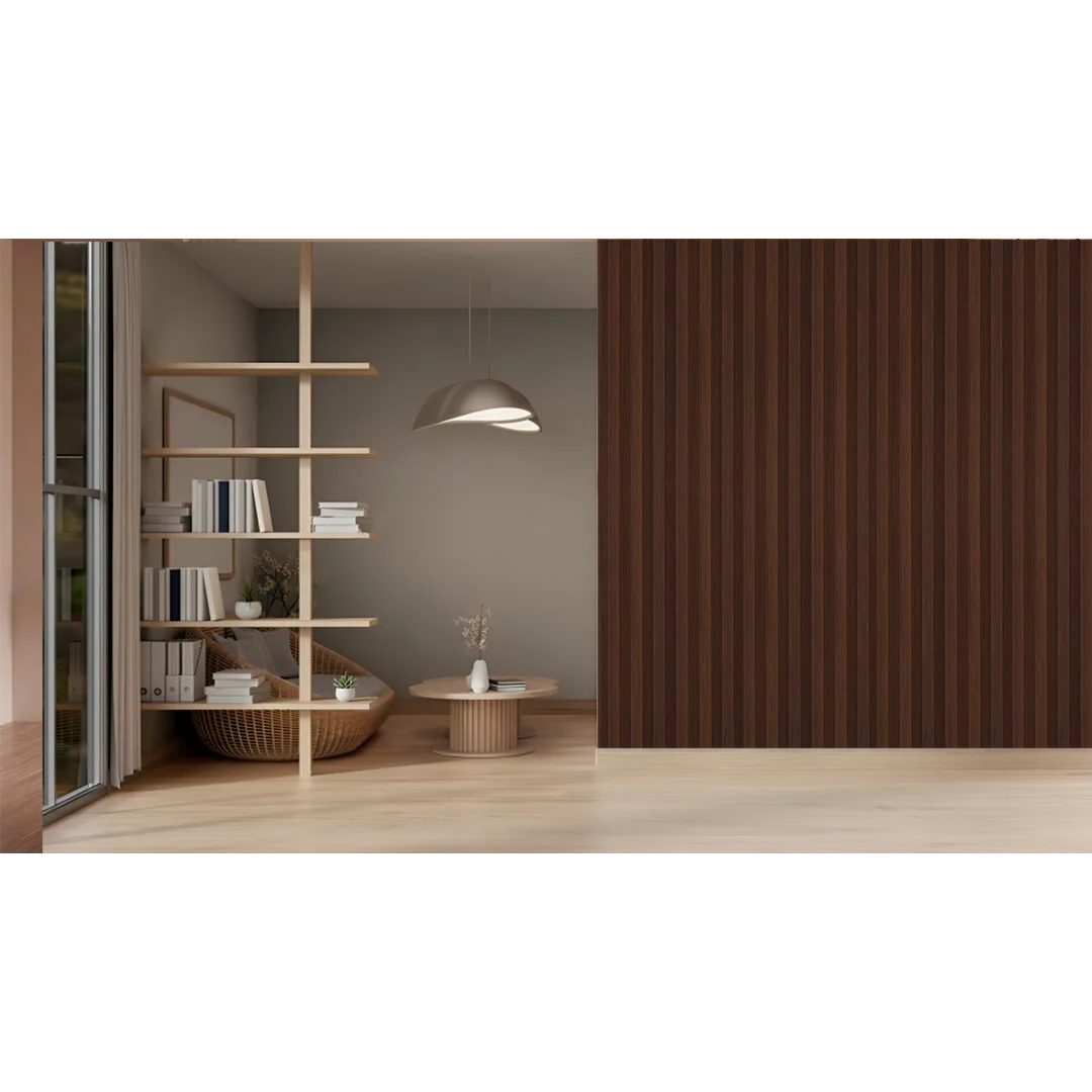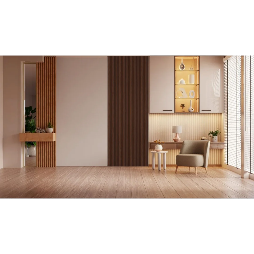 لوح ديكور داخلي مضلع يتميز بتصميم طولي أنيق يشبه الخشب الطبيعي ويضفي لمسة جمالية عصرية على المساحات الداخلية.