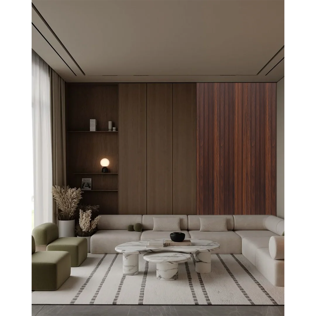 لوح ديكور داخلي مضلع يتميز بتصميم طولي أنيق يشبه الخشب الطبيعي ويضفي لمسة جمالية عصرية على المساحات الداخلية.