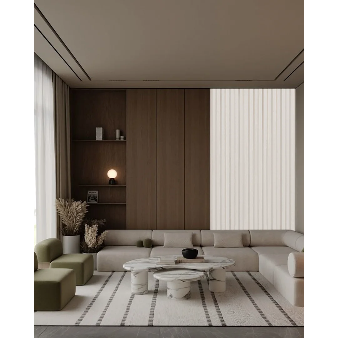 لوح ديكور داخلي مضلع يتميز بتصميم طولي أنيق يشبه الخشب الطبيعي ويضفي لمسة جمالية عصرية على المساحات الداخلية.